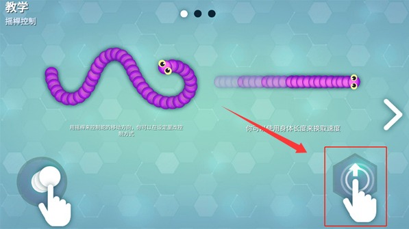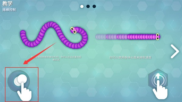 2、游戏中需要通过游戏左下角的摇杆来控制小蛇来进行移动。