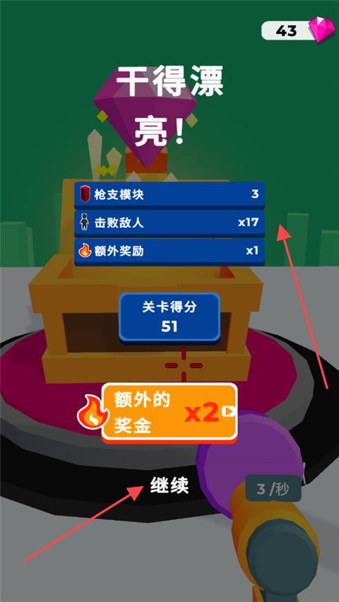 2、配件搭配与资源管理:每次闯关后获得的金币可用于解锁新武器和配件,稀有配件需通过挑战特殊关卡或开启宝箱获取。