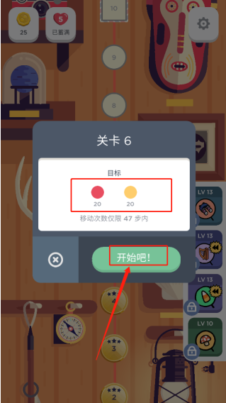 2、进入前有关卡目标,点击下方开始吧即可开始。