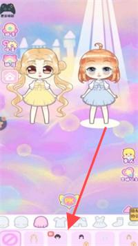1、进入游戏界面,点击下方图示图标,开始对卡通女孩进行装扮,打造初始形象。