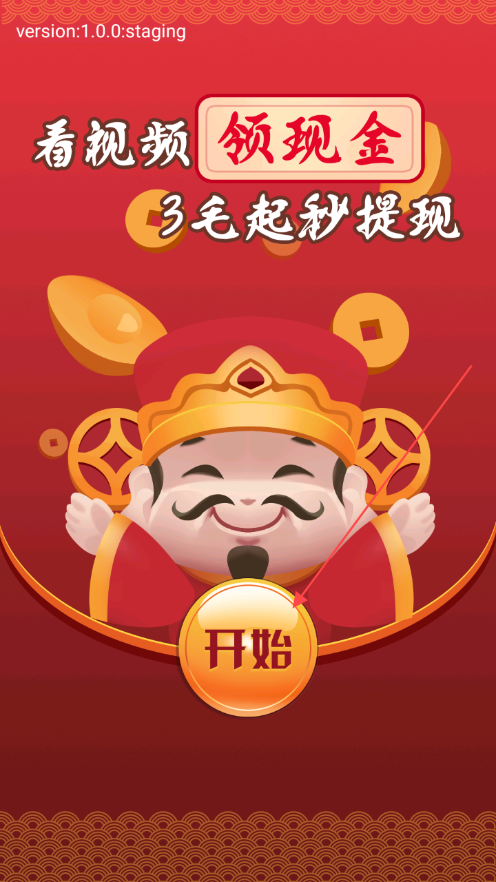 1、进入游戏启动界面后,点击中间的【开始】按钮,这是进入游戏的关键操作,顺利开启赚钱之旅。