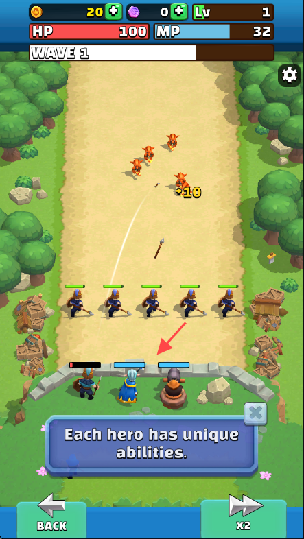 2、战斗中注意下方提示【Each hero has unique abilities.】,利用英雄独特能力应对敌人。