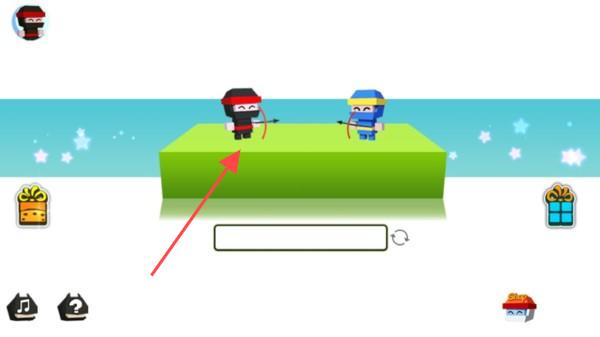 2、在角色对战准备界面,操控己方方块忍者角色(如黑色头巾装扮),留意对手角色(如蓝色头巾装扮),做好对战准备,为战斗奠定基础。