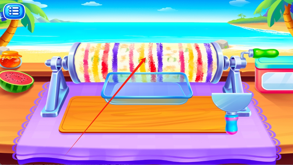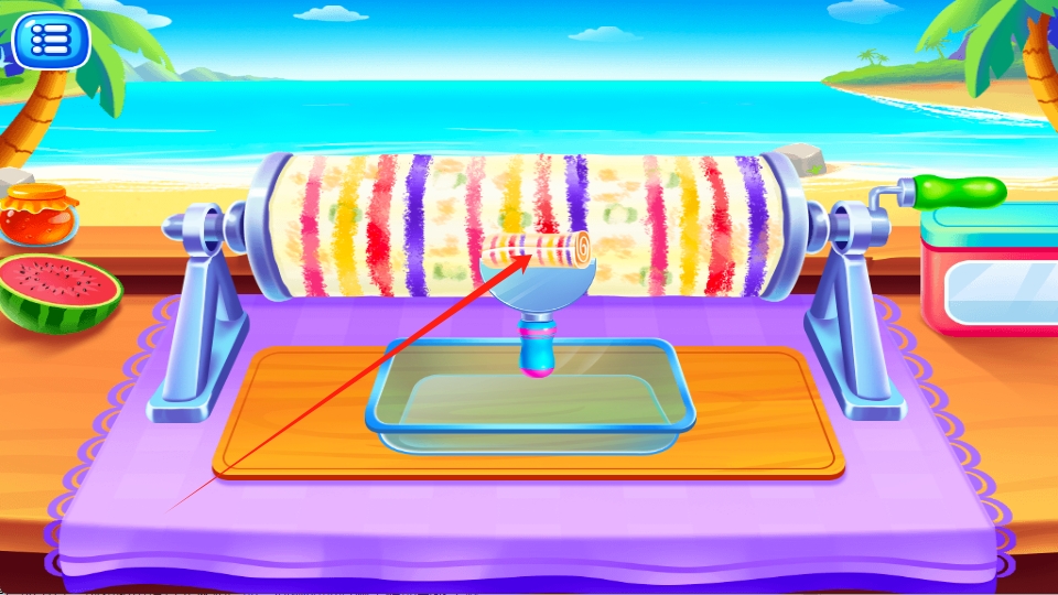 2、将牛奶果汁等材料都倒往机器上滑动摇杆,等待一段时间后,结成冰后按照提示使用工具进行操作。
