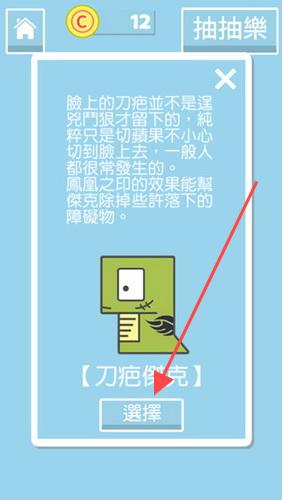 2、遇到角色介绍界面(如【刀疤倒克】),阅读文字说明(脸上刀疤是切菜意外留下,凤凰之印能清除障碍物),点击【选择】按钮确定角色,为后续游戏选择合适助力。