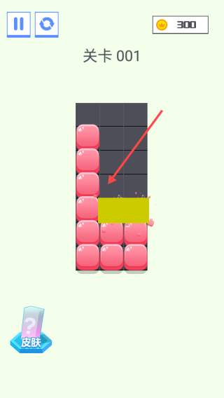 2、在【关卡001】中,按照规则移动方块【如红色箭头指示】,规划方块移动路径,完成关卡目标。