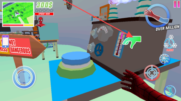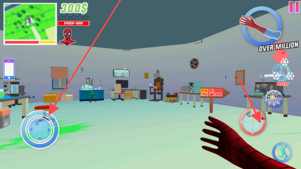 1、蛛丝移动操控:进入后,滑动屏幕控制蜘蛛侠移动方向,点击发射按钮射出蛛丝,通过精准把握发射角度与时机,实现高效移动,在城市建筑间自由穿梭。