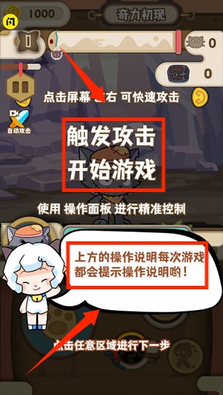 3、画面中有游戏提示,根据提示进行游玩闯关。