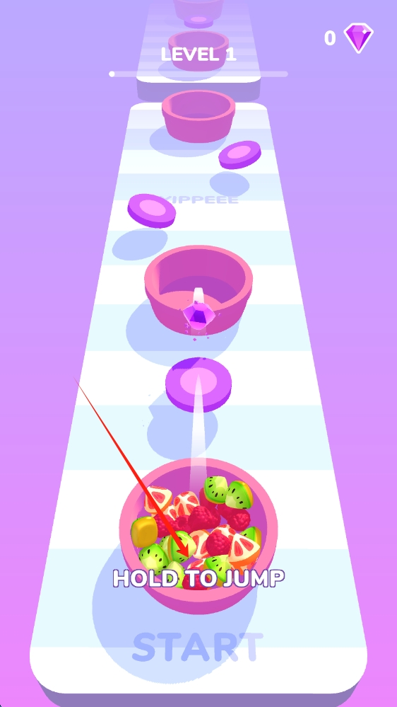 1、弹射操控:滑动屏幕调整弹射角度与力度,点击释放水果,利用物理反弹穿越障碍物,精准抵达目标区域。