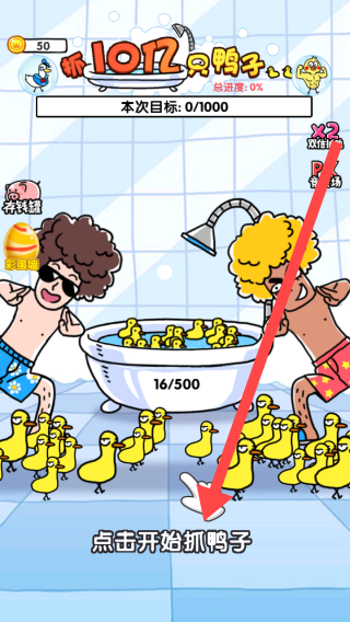 1、在游戏界面点击【点击开始抓鸭子】进入游戏,留意屏幕上方【本次目标】和当前鸭子数量,明确本局抓鸭任务。
