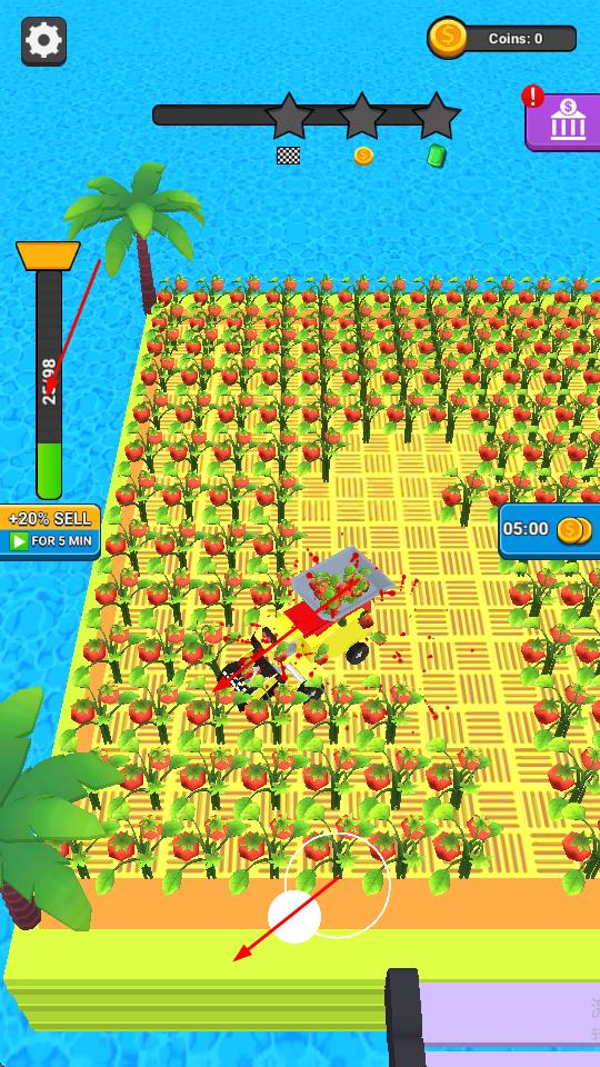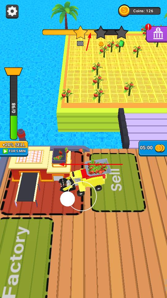 2、将收割的果实运输到标有SELL的区域售卖,同时存在限时 20% 售卖价格提升的增益 。