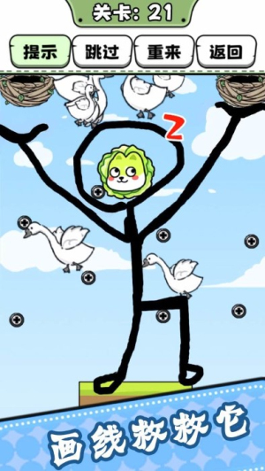 1、创新画线解谜玩法,通过绘制路径帮助菜狗躲避大鹅追击,考验即时策略与反应能力。