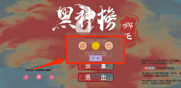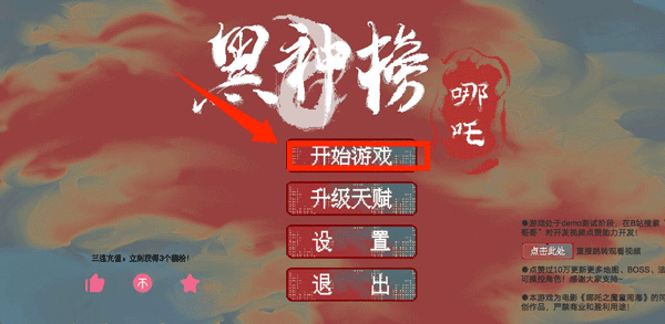 1、下载安装好黑神榜哪吒游戏,运行游戏,点击开始游戏。