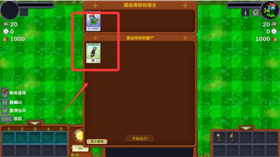 3、挑选你心仪的领主和炮兵类僵尸单位,组建小队准备迎战。