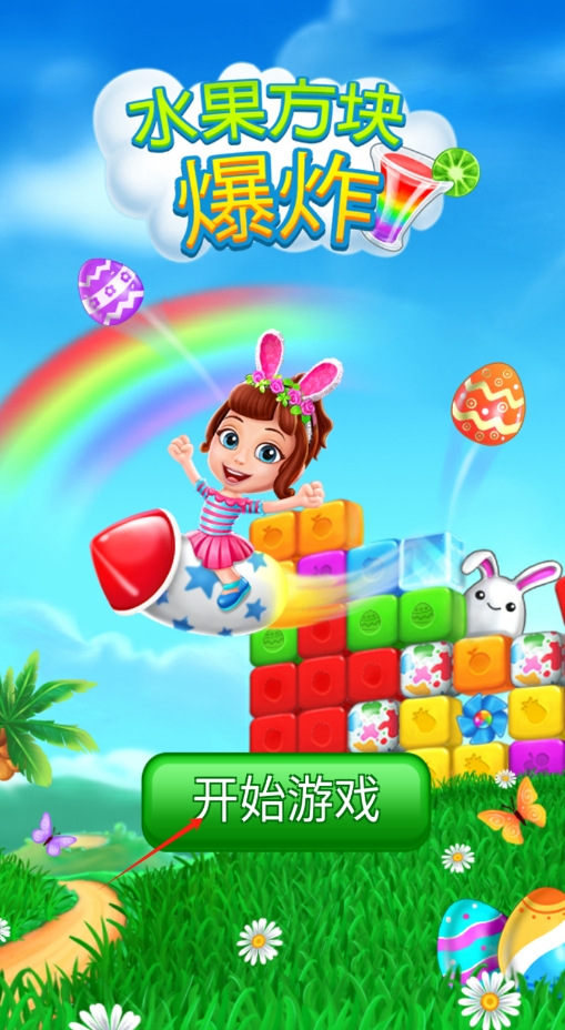 2、进入游戏主界面,点击开始游戏按钮,进入充满色彩的水果方块消除世界。
