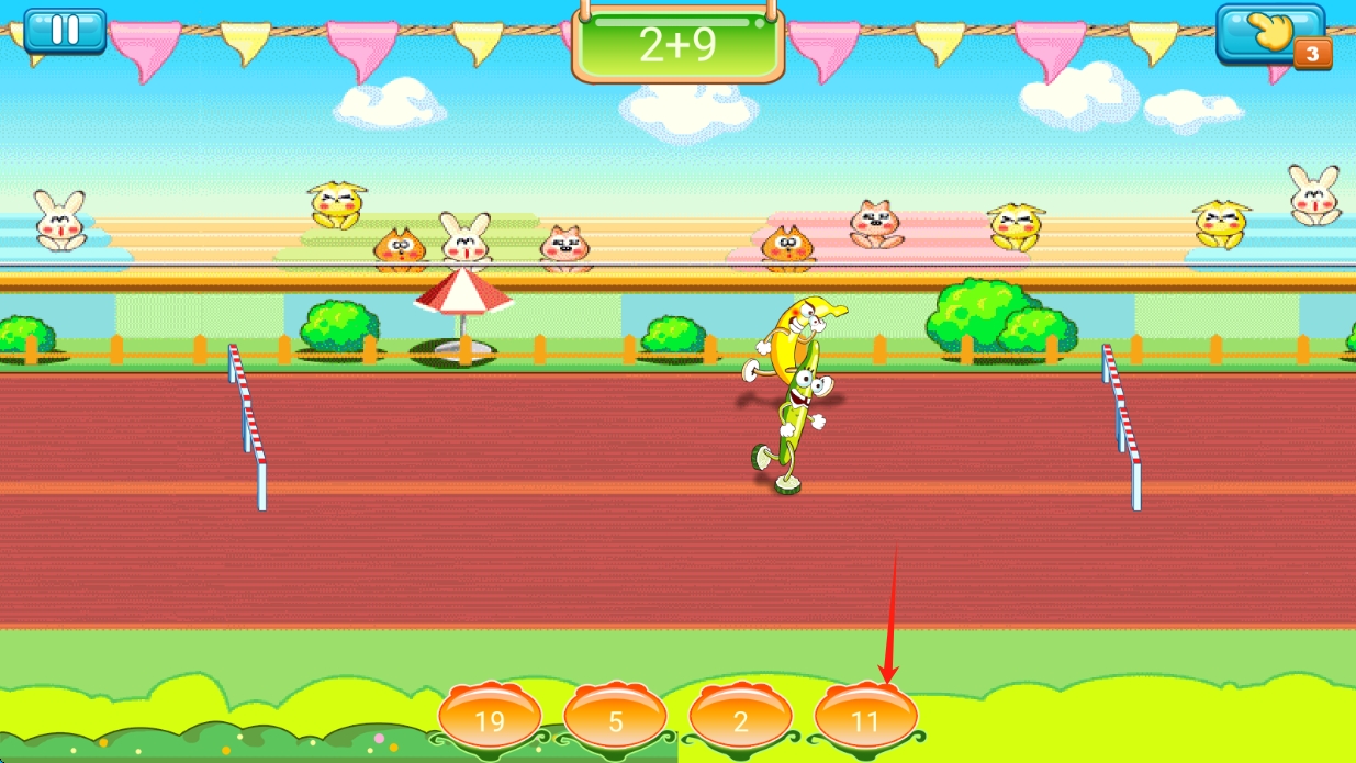 1、竞速答题:角色自动前进,遇到跨栏时系统出题,需在限定时间内完成解答,答对顺利跨越,答错则角色摔倒。