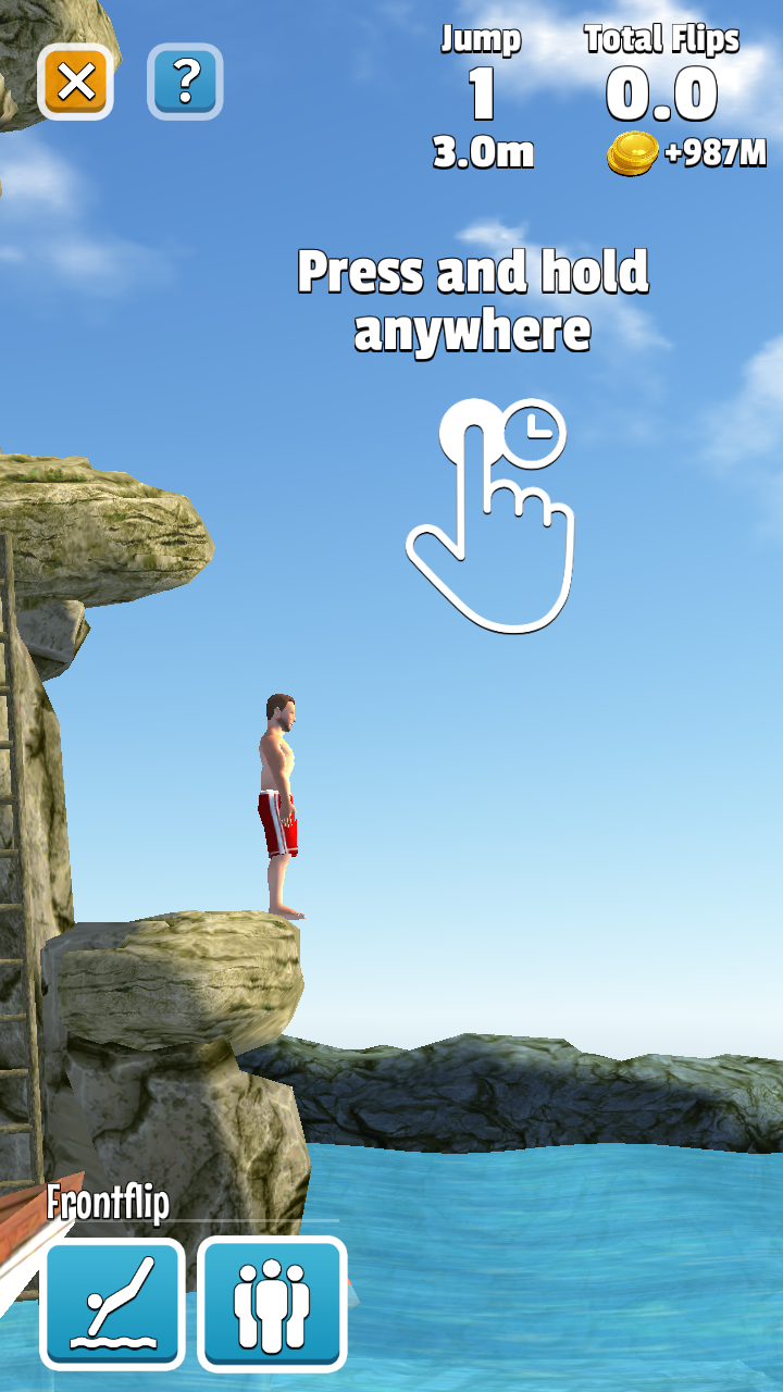 2、出现【Press-hold-anywhere】提示时,按住屏幕任意位置,控制角色进行跳跃和翻转动作。