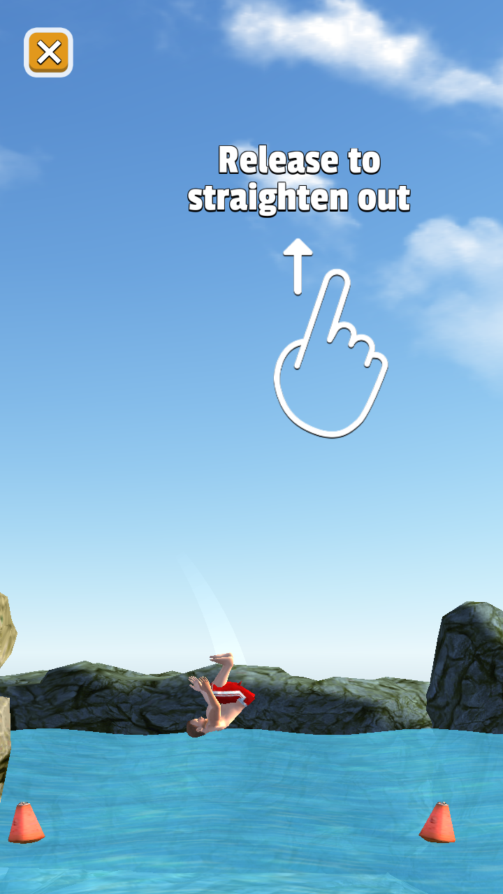 3、当角色在空中时,依据【Release】提示,适时释放手指调整身体姿势,确保以良好的姿态入水。