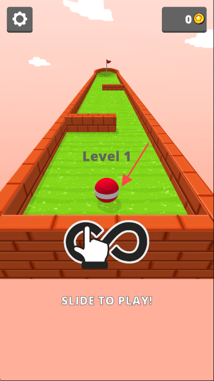 2、在【Level 1】关卡中,滑动屏幕使红球沿通道前进,朝终点旗子方向移动。