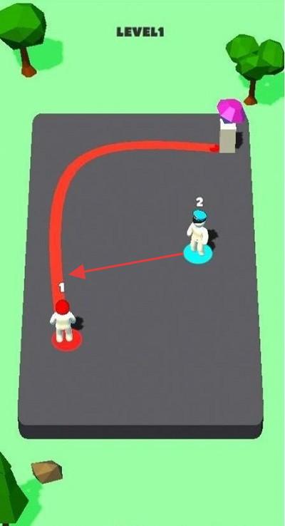 1、玩家操控戴不同颜色帽子的小人,规划其移动路线,按数字顺序依次移动,到达目标位置。