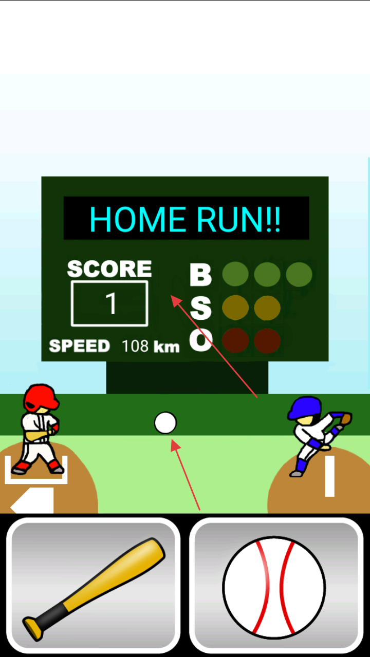 3、当球投出后,把握时机点击击球按钮,成功击出【HOME-RUN】获取分数。
