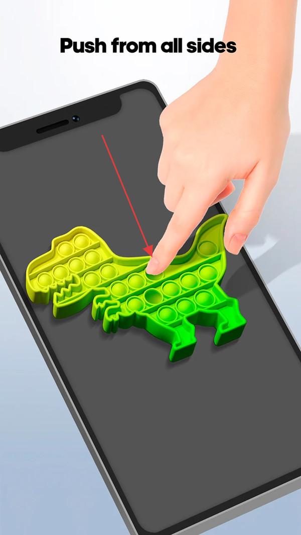 1、进入游戏界面,看到恐龙形状泡泡玩具,按照提示,从各边点击按压泡泡,体验解压玩法。