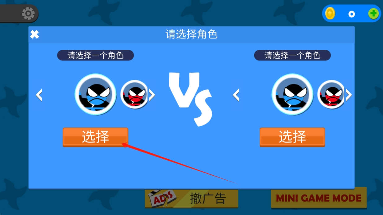 1、点击按钮选择角色,例如有的角色跳跃力强,有的角色翻滚速度快,根据对手风格选择克制角色。