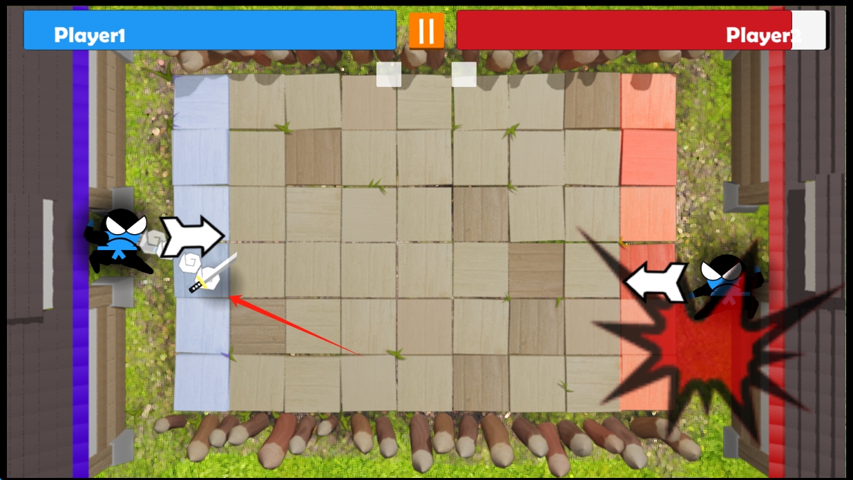 3、道具系统:场景中随机刷新攻击、防御、干扰等多种功能道具,合理使用道具扭转战局,如冰冻对手、制造护盾等。