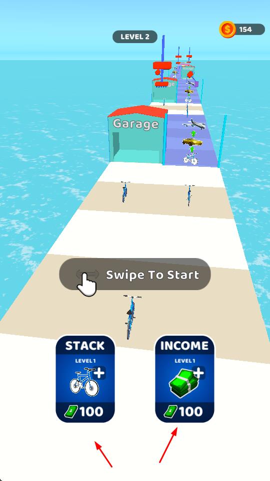 3、载具升级乐趣:通过堆叠车辆并升级它们,玩家可体验从自行车到飞机的华丽转变,感受升级带来的成就感。