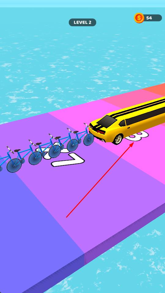 2、载具升级系统:玩家通过升级门可不断提升载具等级,从自行车逐步升级为超长汽车、飞机等。