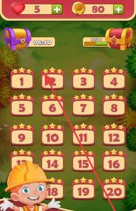 1、游戏主界面显示关卡选择,上方有爱心(5)和金币(80)数量。可点击关卡(如关卡2)开始游戏,注意关卡旁星星评级,争取高星通关获取奖励。