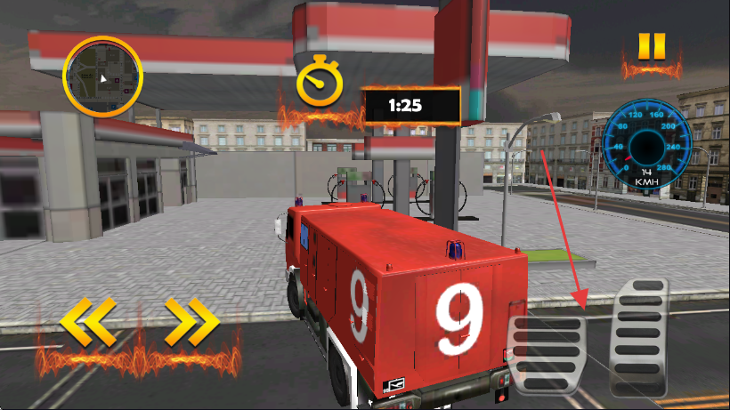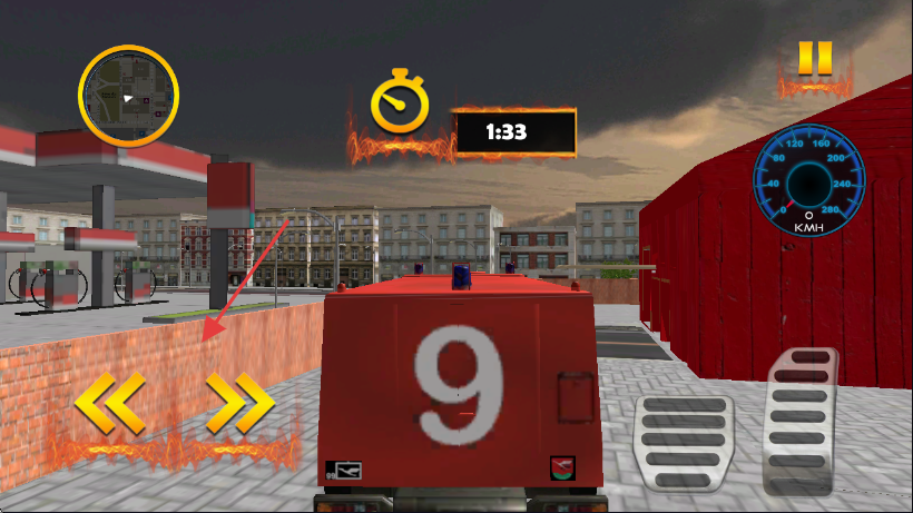 2、驾驶过程中,通过左下角的【左右箭头】控制消防车转向,确保行驶方向正确。