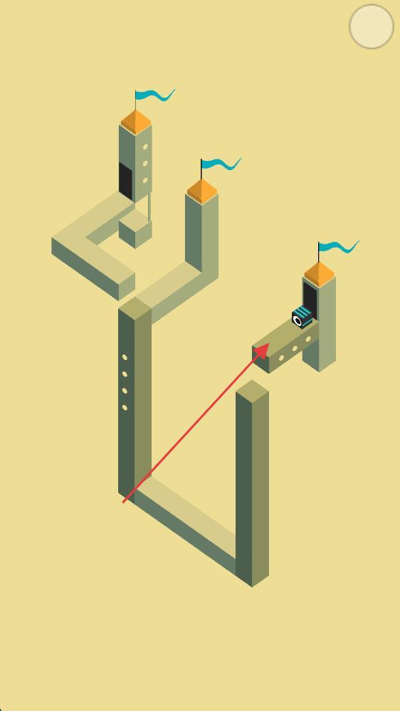 2、中期关卡需同时操控多个可旋转结构,如先将右侧塔楼顺时针旋转90度,使隐藏的桥梁显现,再调整前景石台角度,形成连续通行路径引导小怪物前进。