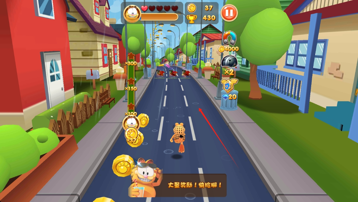 2、角色培养策略:初始免费使用加菲猫,可通过强化升级提升速度敏捷度等属性获取积分加成,也可消耗钻石解锁火奴鲁鲁背包客等属性更强的角色,制定个性化培养路线。