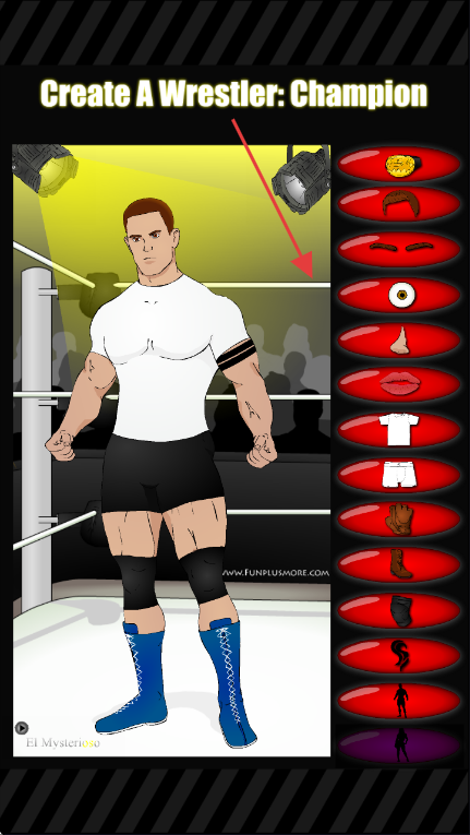2、通过右侧红色按钮选择【头像、眉毛、眼睛】等元素,自定义摔跤手外观。