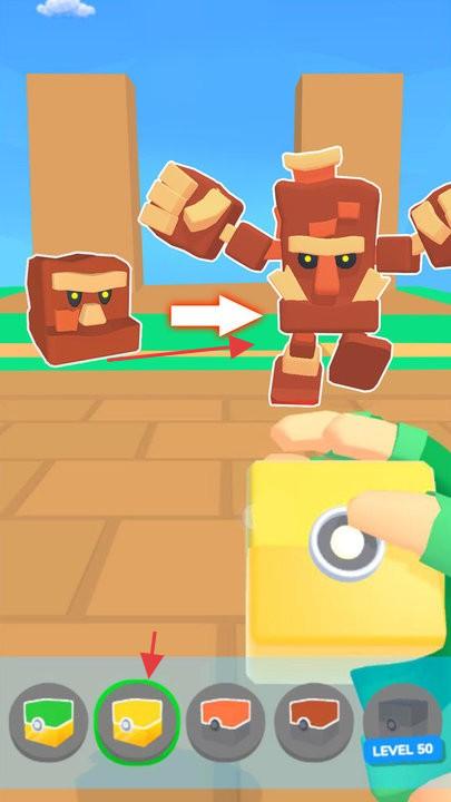 3、玩家通过触摸屏幕来执行合成操作,体验角色进化带来的变化,解锁新的怪物形态。