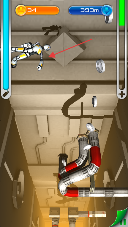 1、倾斜操控精准避障:通过左右倾斜设备控制机器人横向移动,需提前观察障碍轨迹,在高速下落中完成“预判-反应-调整”的连贯操作。