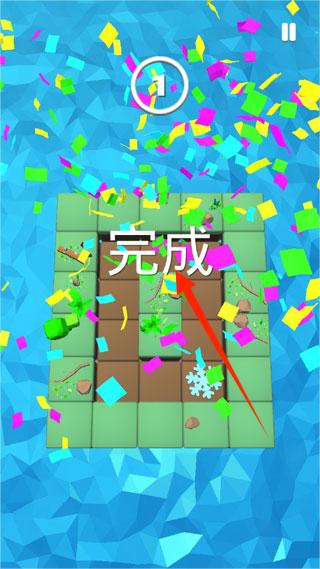 2、成功完成关卡后,会出现完成提示和庆祝特效,表示关卡通过。