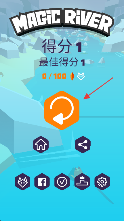 3、游戏结束后,点击橙色旋转箭头按钮可重新开始游戏,冲击更高【得分】。
