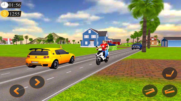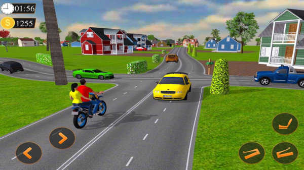 1、驾驶摩托车时注意屏幕上的时间和金币数量,利用转向按钮和右下角操作按钮,安全避让路上车辆。
