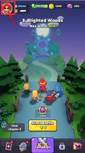 1、进入游戏后在主界面点击开始战斗进行闯关得经验金币。
