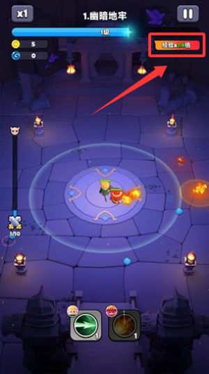3、选择好英雄后角色会自动攻击出现的怪物,击败怪物会获得经验。