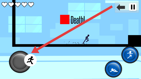 3、通过滑动屏幕轮盘精准操控火柴人移动,在复杂地形中躲避陷阱、迎战敌人。