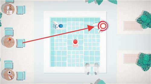 3、在方形泳池界面,按箭头指向瞄准带靶心的圆圈,进行精准操作,这是达成目标的关键步骤,合理规划每一步行动。