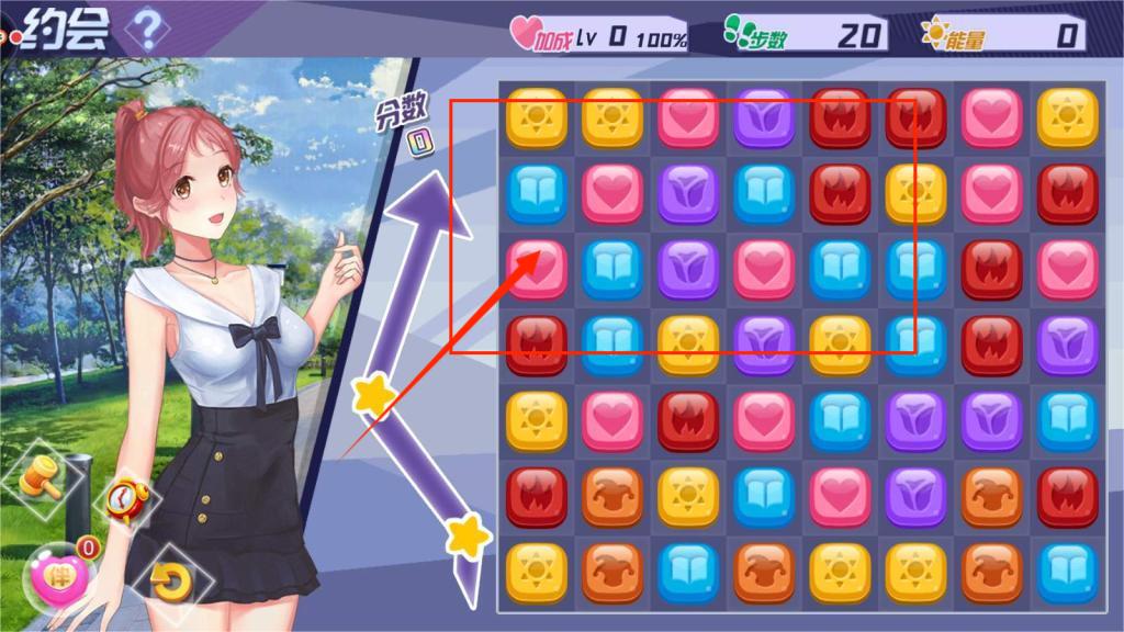 2、在消除游戏里,利用步数和道具,尽可能多地消除方块,提升约会分数。