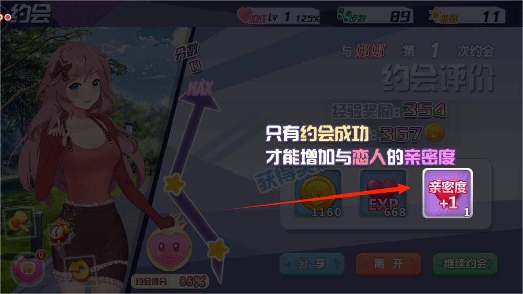 3、约会结束后,根据得分获得经验奖励和金币,成功约会可增加与恋人的亲密度。