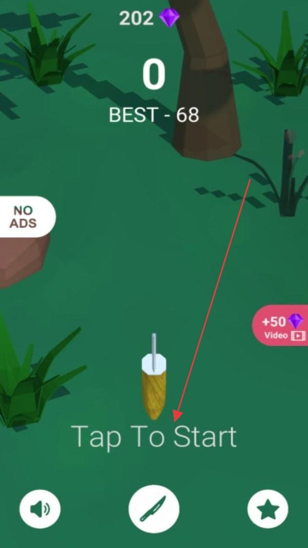 2、当显示“0”“BEST-68”时,点击“TaptoStart”开启游戏,准备迎接飞刀投掷挑战,注意界面提示操作。