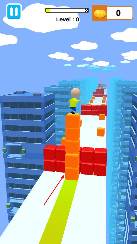 1、进入果冻块冲浪3D,选择初始果冻人形象与果冻块,置身首关赛道起点,滑动屏幕操控角色,开启首次滑行冒险。
