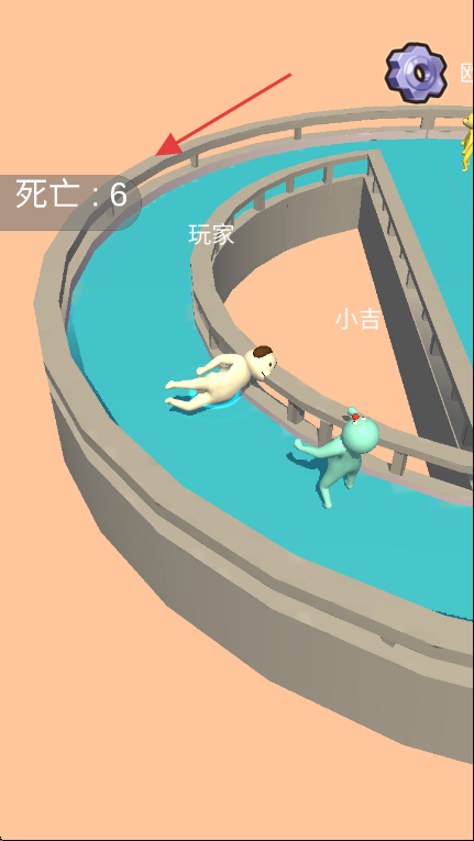 3、游戏中关注【死亡:6】提示,躲避障碍,避免落水,确保在赛道上顺利前进。