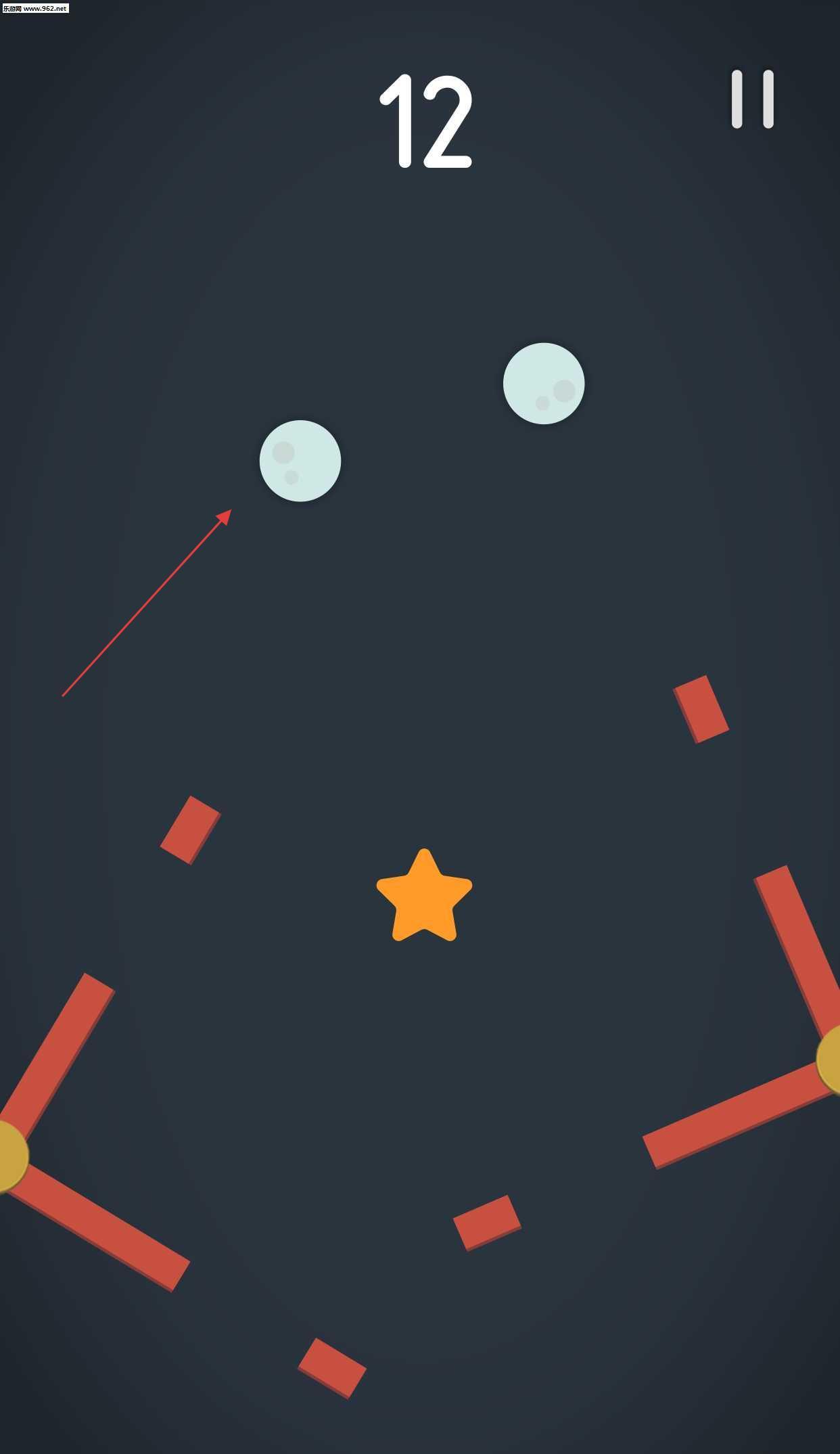 1、进入游戏界面,留意上方数字如12,操控星星躲避红色方块,朝着目标浅色圆移动,这是基础操作,确保开启游戏挑战。
